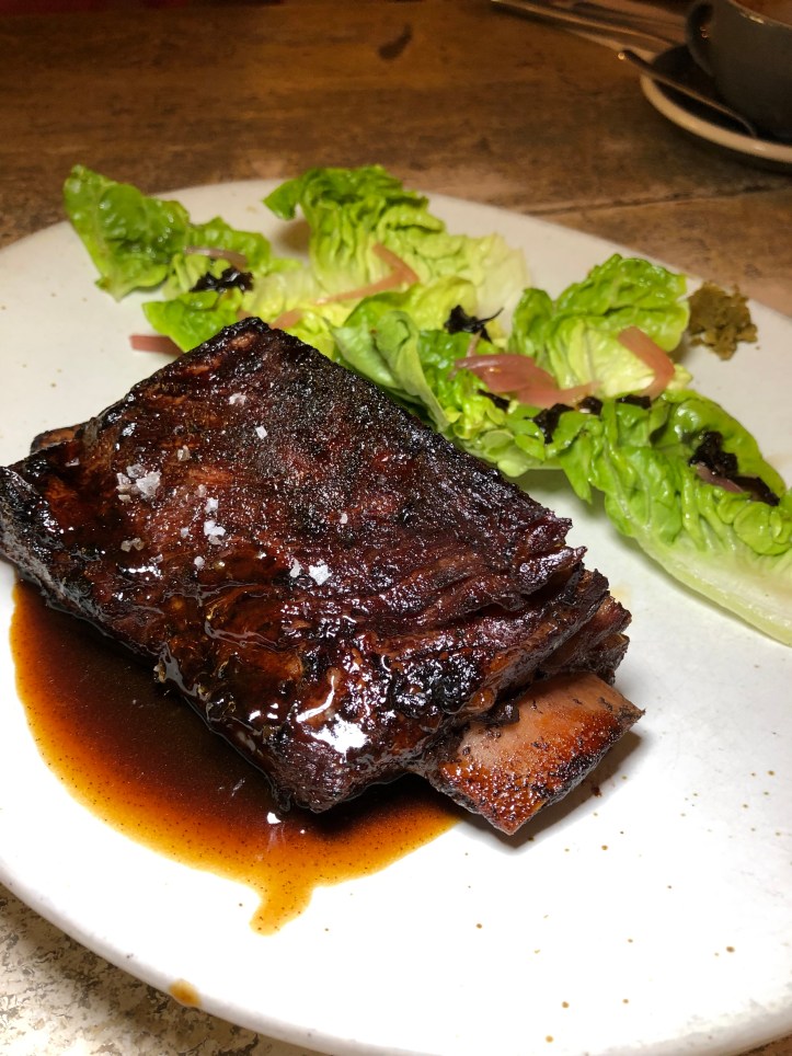 To start, Chef Desmond’s ‘Burnt Leek’ ($10.90) and ‘Sugarloaf Cabbage, Seaweed Butter’ ($12.90) are highly-recommended. The former highlights the humble leek, which is marinated in brown butter and lemon juice, then slow roasted over charcoal fire to draw out the vegetable’s natural sugars. The result is a charred log of leek – the burnt layer peeling away to reveal steaming slivers of the silky sweet allium. A buttermilk sauce speckled with emerald-green spring onion oil lend a slight tang and mellow onion flavour.