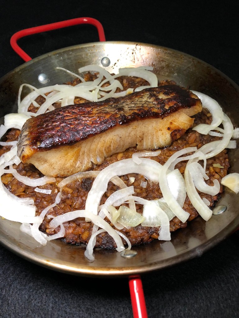 A richly flavored paella dish served in its own pan with a lip-smacking socarrat (burnt, crunchy bottom). Made with Smoked Sweet Paprika, Cayenne Pepper and a secret blend of seafood stock. Even spicier versions are available. Paired perfectly with a generous serving of pan-seared Chilean Seabass. Again expect stronger flavor in this dish.