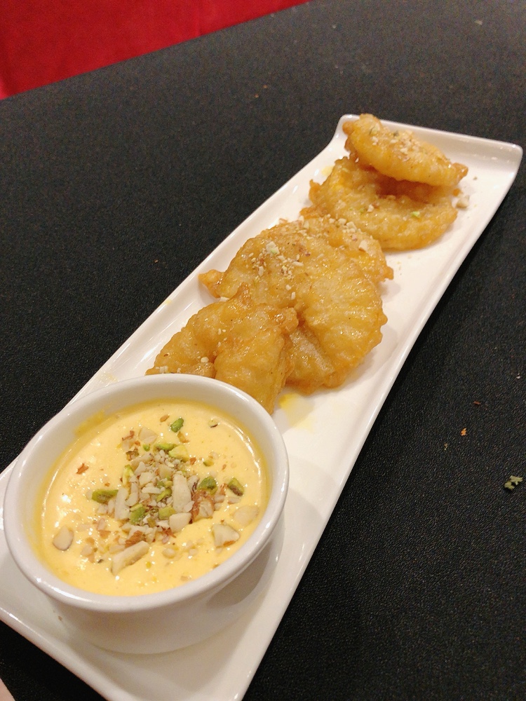 Our unique take on the common jalebi, granny-smith green apple slices covered in a spiced batter and steeped in sweet syrup.